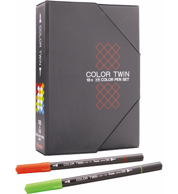 Wysokiej jakości pisaki Color Twin z dwiema końcówkami: cienką - 0,5 mm i grubszą - 0,9 mm. Cienka końcówka - idealna do pisania, szkicowania, rysowania, zaznaczania konturów. Grubsza końcówka charakteryzuje się wyjątkową miękkością, gładko i lekko pisze. Świetnie sprawdzi się do wypełniania większych obszarów. Tusz nie przebija przez papier. Bardzo wytrzymała, odporna na dociskanie do powierzchni końcówka. Idealne zarówno dla początkujących jak i zaawansowanych użytkowników. Sprzedawane w bardzo praktycznym, podręcznym etui. Zestawy 18, 24 i 36 szt. są zamykane na zatrzask.