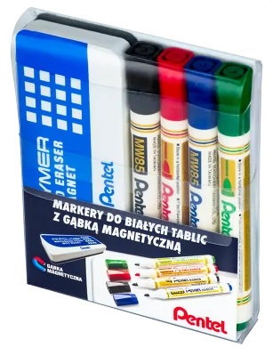 Zestaw 4 ekonomicznych markerów + gąbka magnetyczna