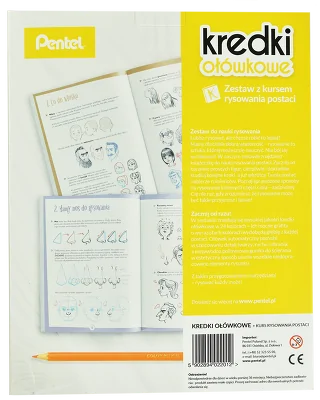 W zestawie bogato ilustrowany kurs rysowania postaci, kredki ołówkowe 24 kolory, ołówek i gumka. Kurs wyjaśnia i pokazuje, że rysowanie to sztuka, której można się nauczyć cierpliwie i dokładnie studiując kolejne kroki. Książeczka podzielona jest na 14 tematycznych rozdziałów: oczy, nos, uśmiech, twarz, głowa, uszy, włosy, emocje, ciało, ręce, nogi, tors i pośladki, ruch, ubranie. Z takim przygotowaniem i narzędziami – rysować każdy może!